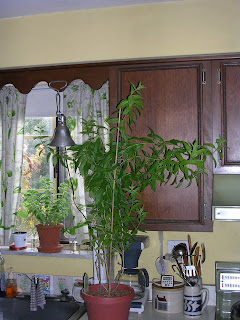 As I have said in numerous postings, this has been a great season for herbs in containers. This one to the right is the lemon verbena that is coming inside. It will lose most of its leaves after coming in. More lemon verbena bread on the horizon! Also a lot of tea. It makes a great cup of tea in the winter. I made 12 jars of lemon verbena jelly yesterday. Changed the recipe up so I will have to let you know how they turned out. Hope you are enjoying the warm weather where you are. Not quite Indian summer yet. Haven't had a frost. It was a fabulous day in western Pennsylvania.