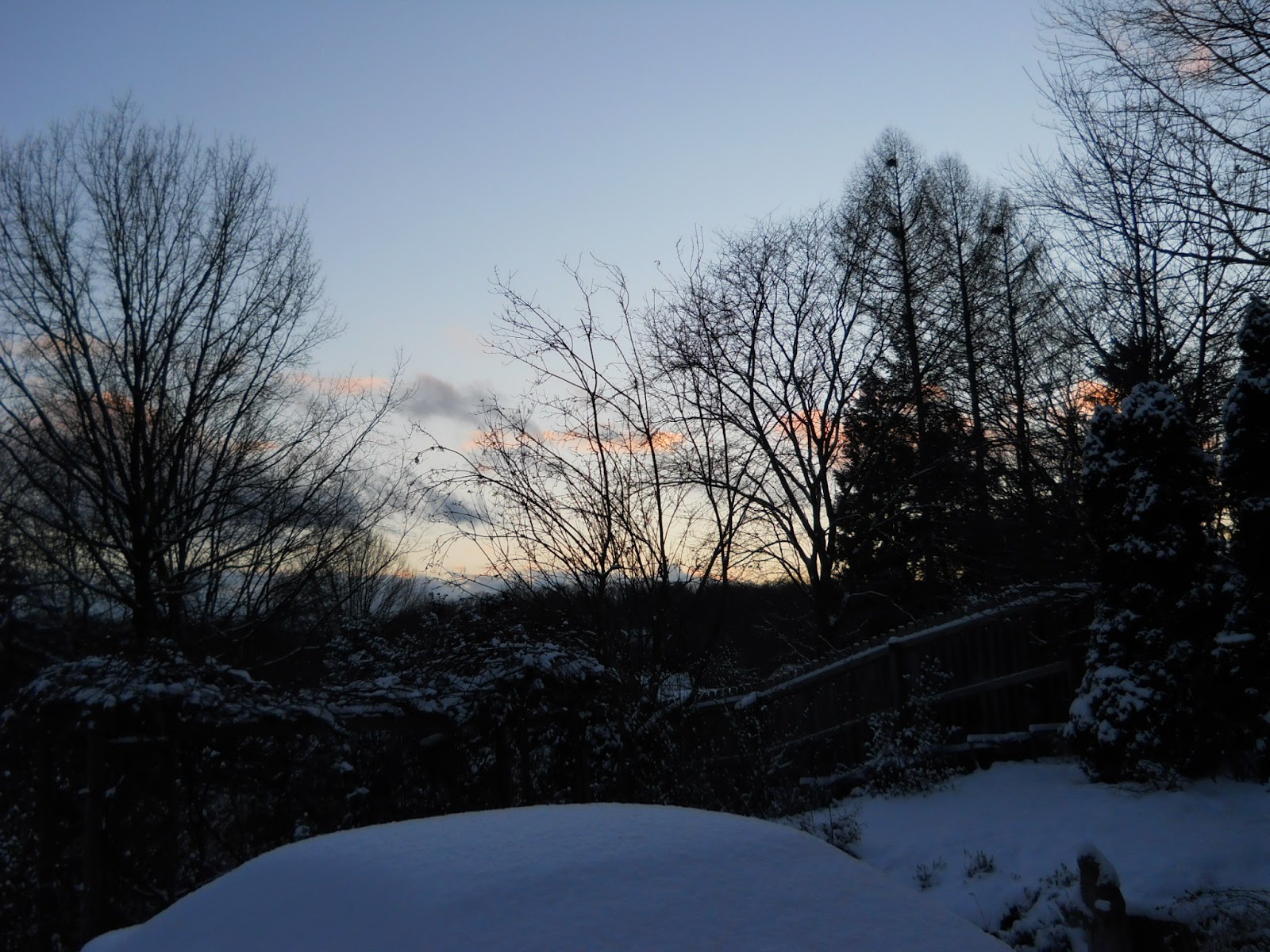 Well, Happy New Year 2012! We finally have winter weather to report. I went out to do some errands and barely got back home. We had that wonderful lake effect snow, but it reminded me of New England! I do love the winter sunsets when the sun is out. Beautiful crisp colors.
